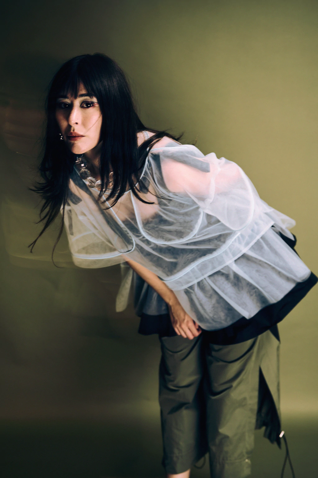 A Blusa Flutua mistura universos por ser inspirada no shape da camiseta do streetwear, pelas mangas e volumes mais largos e também nas roupas de festa por ser de tule transparente, além dos babados e proporções amplas e cheia de ondulações marcadas pelas costuras que se destacam sobre o corpo ~ uma camada que tem potencial de transformar um look todo e o pretexto que faltava no guarda-roupa pra reinventar as roupas de sempre com essa dose de cor e textura.